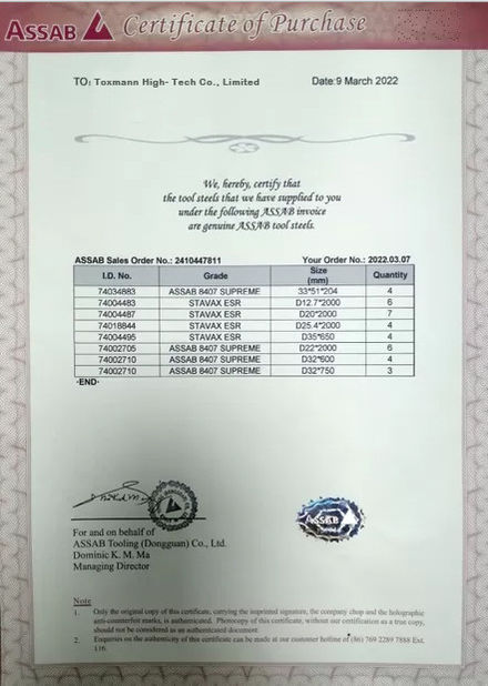 スタンダード:Raw Material Report 範囲/範囲:Metal Material で発行:ASSAB |